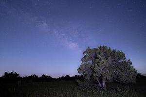 Light painted tree under the milky way in Johnson City, Texas