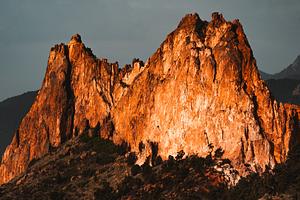 Red rocks at golden hour in Garden of the Gods, Colorado.